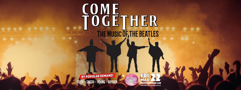 A sensational night of classic Beatles hits is in store at The Concert Lounge, Croydon; performed by one of Melbourne’s leading interpreters of the Fab Four; featuring Phil Smith, Gary Young, Cres Crisp and Lee Dryden. Including ‘Here Comes The Sun’, ‘Let It Be’, ‘Yesterday’, ‘Twist & Shout’, ‘Blackbird’, ‘I Saw Her Standing There’, ‘While My Guitar Gently Weeps’ and many more…