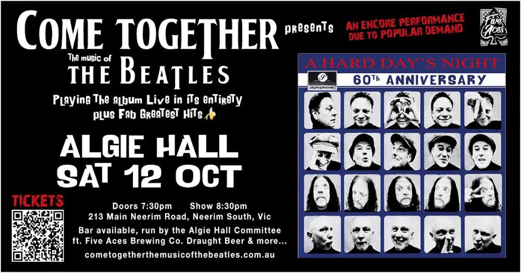 Due to popular demand, we are presenting an Encore performance of our celebration of the 60th Anniversary of The Beatles album ‘A Hard Day’s Night’. Once again, we’ll be performing the album in its entirety, plus loads more Beatles classics…